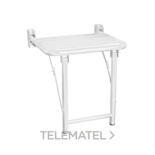 Fabricado en acero inoxidable AISI 304 con recubrimiento plastificado en blanco, resiste sin problema la humedad constante del entorno de ducha. El diseño abatible con patas de apoyo es clave: cuando no se usa, se pliega contra la pared y desaparece; cuando se necesita, ofrece una base estable que transmite confianza al usuario. Es la solución más demandada en reformas de baño adaptado para mayores y personas con movilidad reducida.