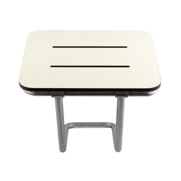 Asiento abatible con pata a pared, fabricado con plancha de resina fenólica sólida, color marfil y con estructura de acero inoxidable AISI 304, acabado satinado. Construido con materiales que aseguran su buen mantenimiento y limpieza, este asiento para ducha es resistente al agua y presenta una gran vida útil. Adecuado para baños específicamente diseñados para personas con movilidad reducida o de edad avanzada. Modelo apto para colectividades. Cuenta con un sistema que mantiene el asiento en posición vertical hasta que se libera tirando de la parte superior del asiento. La posición de uso del asiento es en posición horizontal, siendo la posición abatida solo recomendada para permitir la accesibilidad. Medios de anclaje a la pared NO INCLUIDOS. Se recomienda utilizar siempre los medios de fijación a la pared más adecuados, en función del tipo de pared y de acero inoxidable.