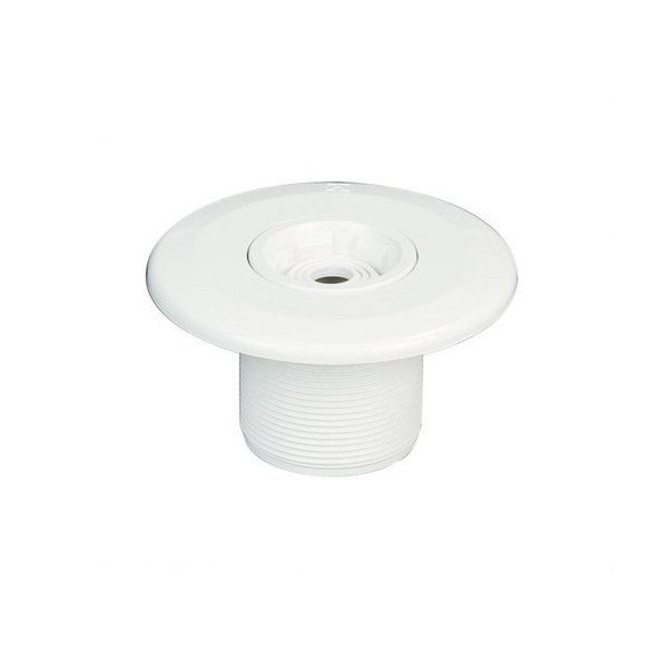 Boquilla de impulsión Multiflow para enroscar. Este sistema consiste en que la bola de la boquilla se suministra premarcada con una serie de diámetros (14-20 y 25). Con la ayuda de un punzón (también suministrado junto a la boquilla) se puede seleccionar uno de los diámetros en el momento de la instalación. Caudal máximo recomendado para una velocidad de paso máx de 4m/segundos, según norma UNE 13451-1:, diámetro 14= 2,2 m3/h, diámetro 20 = 4,5 m3/h, diámetro 25 = 7 m3/h. Rosca exterior 2", e interior encolar diámetro 50mm. Construida en ABS color blanco. Se recomienda instalación con pasamuros ref.: 15658-15659. Los orificios de la rejilla no superan los 8mm según UNE 13451-1.