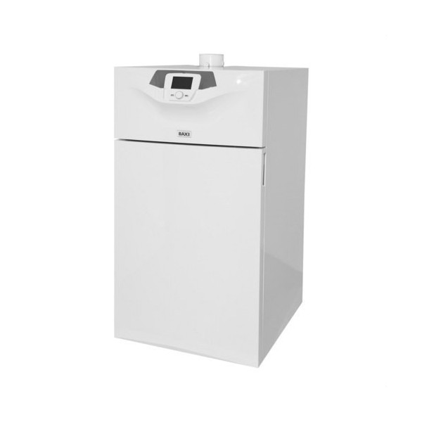 Caldera de pie de condensación POWER HT PLUS 70F gas natural Caldera de gas de condensación para instalaciones de calefacción por agua caliente con quemador de gas modulante de premezcla con control de llama por sonda de ionización y cuerpo de caldera construido íntegramente en acero inox AISI 316L. Rango de modulación 1:9 con un nivel de emisiones extremadamente reducido (clase 5 NOx). Alto rendimiento (4 estrellas según la Directiva 92/42/CEE). Cuadro de control digital y extraíble con funciones de programación, control de la temperatura por sonda exterior. Es necesario montar una botella de equilibrio/intercambiador de placas para asegurar el caudal mínimo. Marca: BAXI Potencia útil con temp. 80/60ºC: 7,2 - 65 kW Presión máxima de trabajo: 4 bar Rendimiento útil a potencia máx. con temp. 80/60ºC: 97,2% Rendimiento útil a potencia máx. con temp. 50/30ºC: 105,0% Rendimiento útil con carga parcial del 30% con temp. 50/30ºC: 108,1% Dimensiones (ancho x alto x profundidad): 600 x 848 x 681 mm Peso: 70 kg