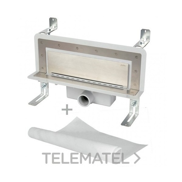 Canaleta de pared registable S-861 30mm inox rellenable salida frontal con lámina impermeabilizante de tela geotextil 2x1,5m