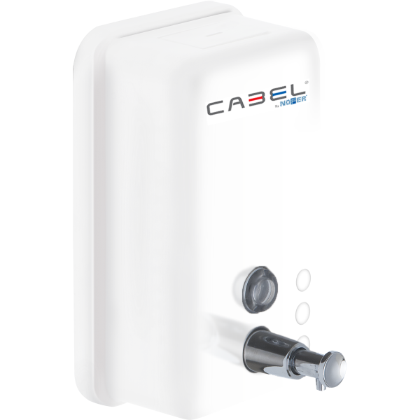 Dosificador de jabón vertical de 1200 ml en un elegante acabado de acero blanco.