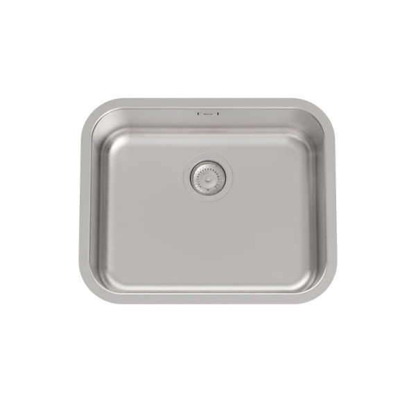 Fregadero de cocina Roca de 1 cubeta en acero inoxidable satinado con válvula 3½" incluida. Robusto, fácil de instalar y pensado para el uso diario.