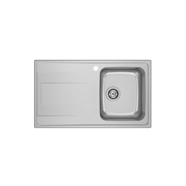 Fregadero BUDAPEST 86 EI 1 cubeta 1 orificio para grifería 1 escurridor a la izquierda y válvula 3½'