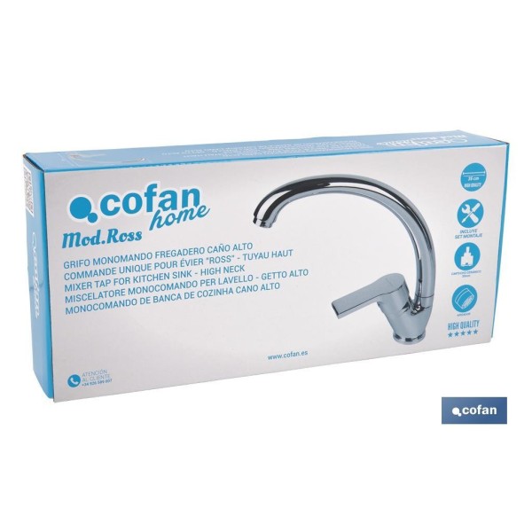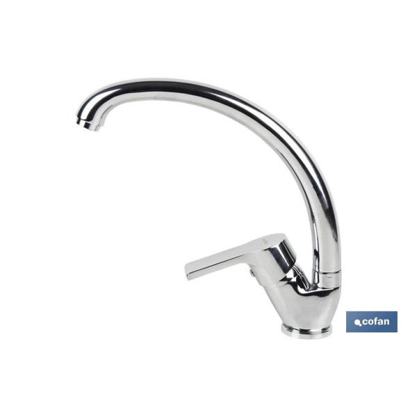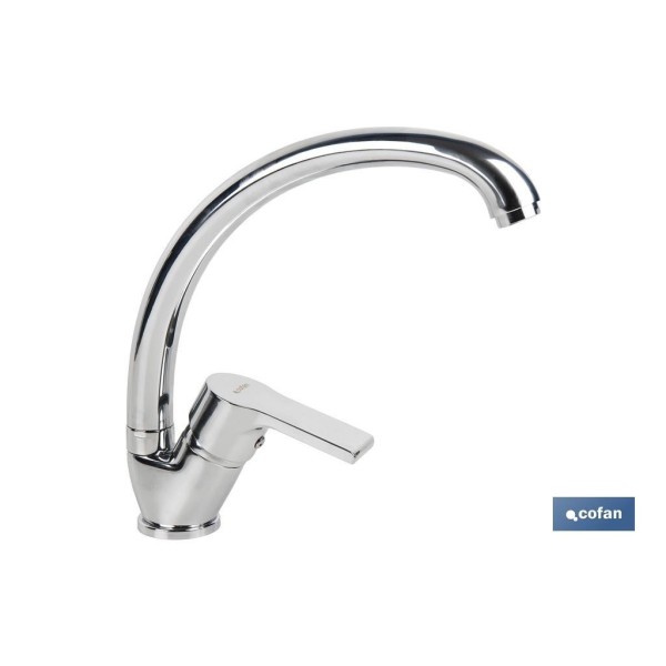 Grifo de cocina monomando para el fregadero. Fabricado en latón cincado con acabado cromado. Caño alto en C. Cuenta con un cartucho cerámico de 35 mm y dispone de aireador anti cal. Tiene un caudal de 8 l/min. Incluye kit de fijación y los latiguillos son de alta calidad. Medidas: 23 x 25 x 4 cm. Muy fácil de instalar.