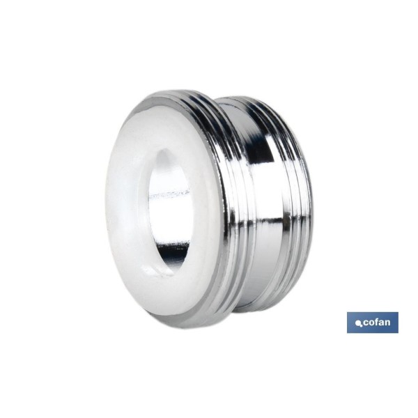 Reductor/Ampliador de latón o doble macho para grifos aireadores de cocina o baño con rosca de 22 x 1 y 24 x 1. Este tipo de reductor o ampliador es ideal para convertir cualquier accesorio de grifería de rosca hembra de 22 mm a rosca macho de 24 mm y viceversa. Fabricado en latón de color plata, es resistente a la oxidación, a la corrosión y al paso del tiempo. Dispone de una arandela de estanqueidad engomada para evitar fugas en la rosca de 24 mm, y una ranura interna en la rosca de 22 mm, ideal para retirar el reductor o ampliador con una simple moneda. Medida de altura total del adaptador: 12 mm. Este reductor o ampliador para aireadores se vende de forma unitaria.