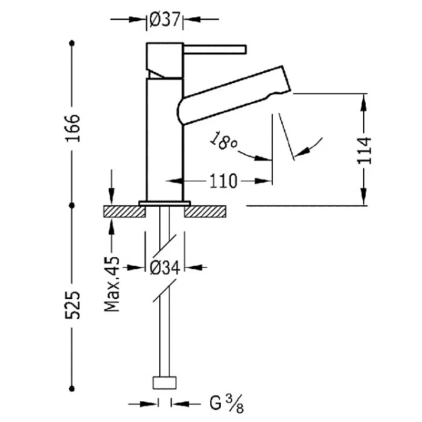 Monomando lavabo MAX-TRES diámetro 37 maneta palanca cromo