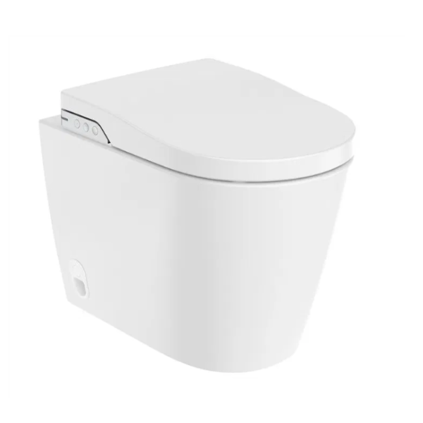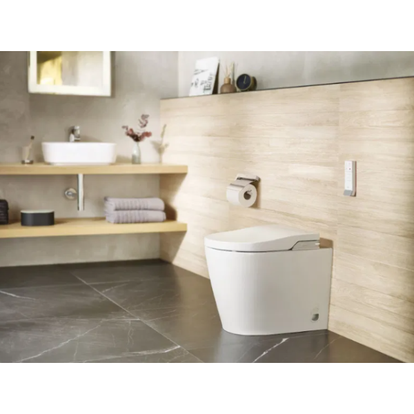 Smart toilet adosado a pared Roca Rimless® Vortex con tanque integrado de doble descarga 4,5/3 l con salida dual. Incluye tapa y asiento con funciones de lavado y secado. Esmalte Supraglaze®. Necesita toma de red. Para su óptimo funcionamiento se recomienda realizar periódicamente las tareas de mantenimiento y limpieza con los productos consumibles compatibles (ver más abajo en Productos Consumibles Compatibles).