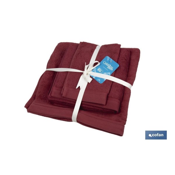 JUEGO DE 3 TOALLAS BURDEOS 580 G/M2 GAMA PARÍS 30X50 50X100 70X140 CM