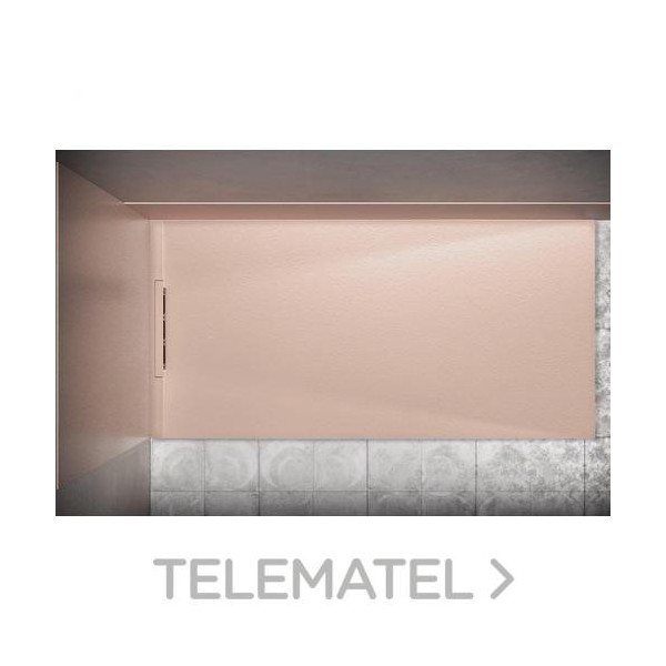 El plato de ducha LIMITE de FIORA en formato 200x90 cm convierte una ducha de gran formato en el centro de un baño de diseño, con un acabado pizarra que imita la textura natural de la piedra en un tono arena rosado muy en tendencia.