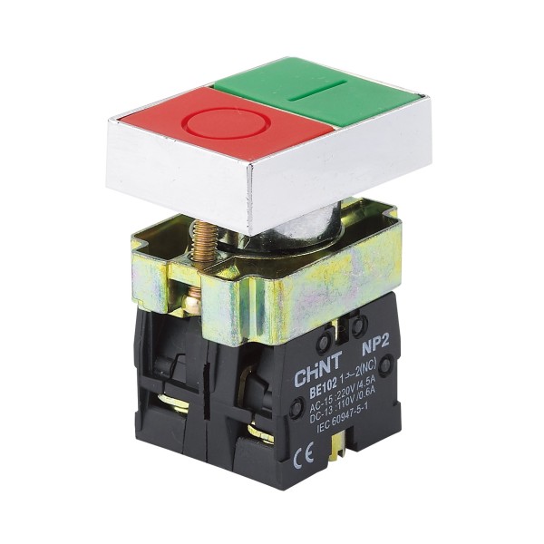 Pulsador doble rasante metálico verde/rojo 1NA+1NC
