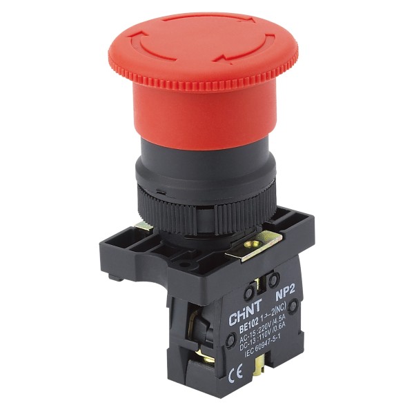 Pulsador seta con giro d:40mm plástico rojo 1NA