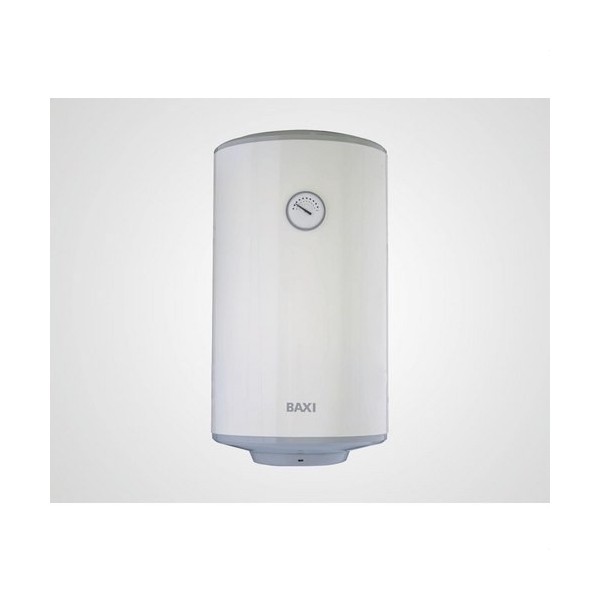 Termo eléctrico V 280 (80 litros) Termo eléctrico de fijación mural vertical con una capacidad de 80 litros equipado con una resistencia blindada sumergida de 1,2 kW , un termostato interno de regulación y un termómetro para visualizar la temperatura del agua acumulada. Válido para utilizarse como soporte térmico en instalaciones solares. Calorifugado con espuma rígida de puliuretano expandido, libre de CFC (clorofluorcarburos) y HCFC (hidrofluorcarburos), fabricados en acero esmaltado y protegidos con ánodo de magnesio. Se suministra con los accesorios de fijación mural, los manguitos dieléctricos y el grupo de seguridad. Marca: BAXI Presión máxima de trabajo : 9 bar Capacidad: 80 litros Potencia útil: 1,2 kW Dimensiones (alto x diámetro): 814 x 433 mm Peso neto: 21 kg