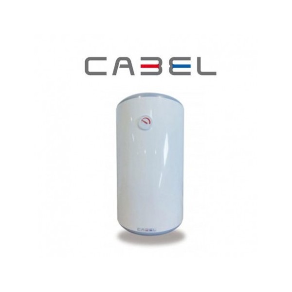 Termo eléctrico vertical CABEL 50 litros, resistencia de 1.500 W, cuba vitrificada, ánodo de magnesio, válvula de seguridad incluida. Ideal para instalaciones de agua caliente sanitaria doméstica.